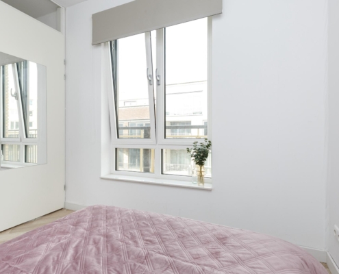 Binnen in het appartement bevinden de slaapkamers zich aan de voorzijde. Deze hebben beide een goed formaat en zijn geschikt voor tweepersoonsbedden.