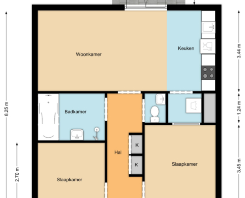 Aan de rechterzijde bevinden zich de meterkast en de kast met de stadsverwarmingsunit.