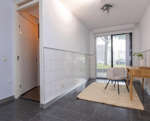 Bij binnenkomst tref je een royale ruimte die je volledig naar eigen wens kunt indelen. Of je nu behoefte hebt aan een thuiskantoor, hobbyruimte, extra slaapkamer of praktijk aan huis, de mogelijkheden zijn eindeloos. Aan de achterzijde van de woning bevindt zich de toegang tot de carport, zodat je altijd verzekerd bent van een eigen parkeerplek.