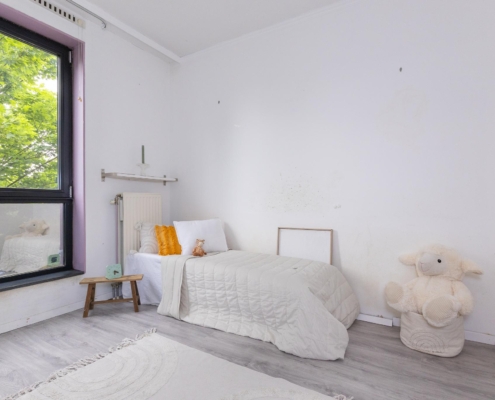 Op de bovenste etage vind je nog eens twee kamers, waarvan één momenteel in gebruik is als kastenkamer. De tweede slaapkamer biedt toegang tot een balkon en is daarmee een ideale plek voor een rustige start van de dag of juist om je even terug te trekken.