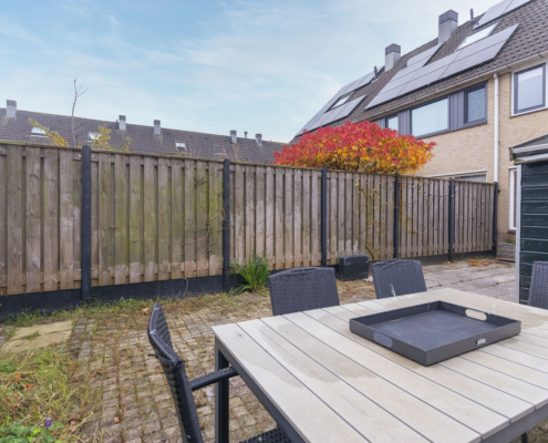 De achtertuin ligt op het zuidoosten: de zon laat zich hier graag zien. Ideaal voor een kop koffie in de ochtend of lang natafelen wanneer de dag voorbij is. Achterin staat een houten tuinhuis, perfect voor fietsen, gereedschap of hobbyspullen.