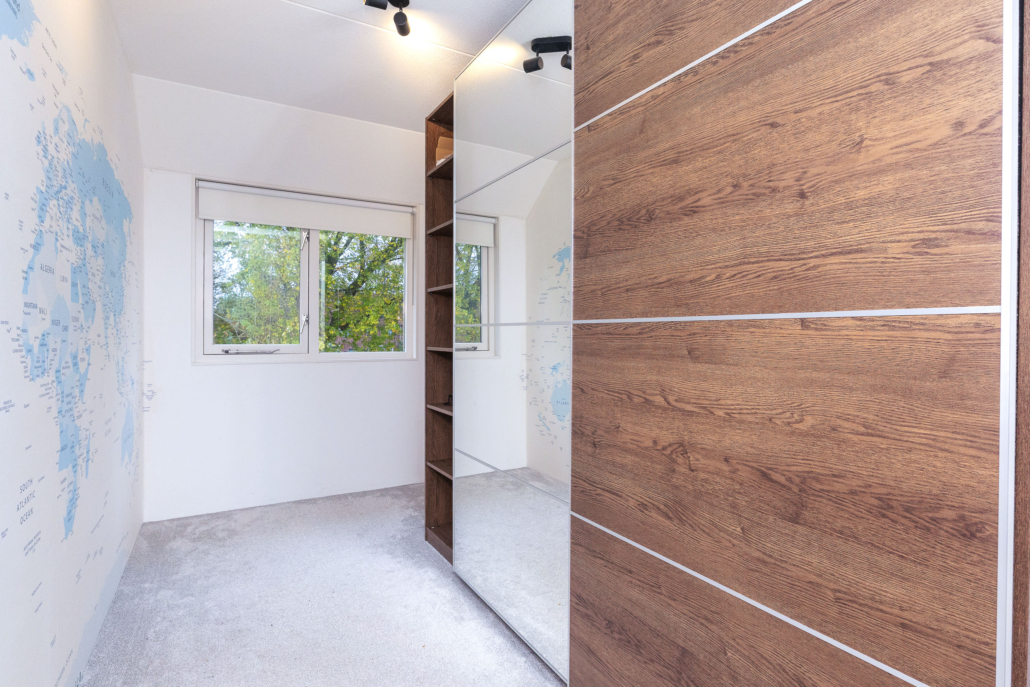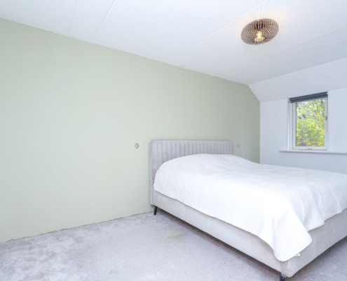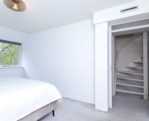 De zolderverdieping biedt een grote open ruimte. Voor wie wil: in te richten als extra slaapkamer, werkplek, fitnessruimte of gewoon als royale bergzolder.