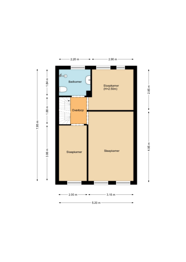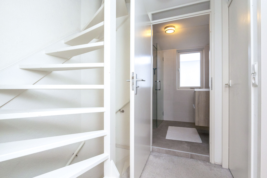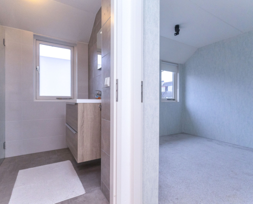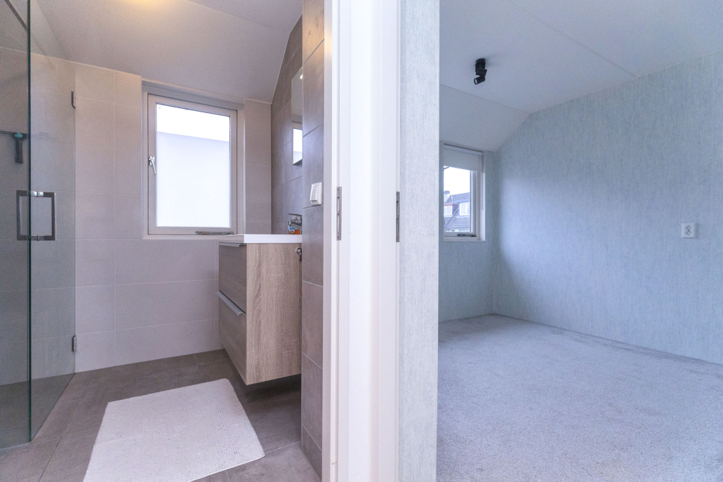 Op deze verdieping vind je drie volwaardige slaapkamers. Ruim, licht en praktisch in te delen. De badkamer is stijlvol afgewerkt met wastafelmeubel, toilet en inloopdouche.