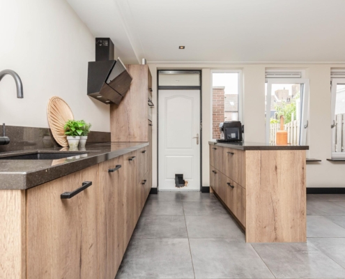 De woning bevindt zich in een rustige straat. Via de entree, voorzien van een garderobe en meterkast, betreed je de lichte woonkamer aan de voorzijde. Hier geniet je van een overvloed aan daglicht. De begane grond is voorzien van een nette tegelvloer met comfortabele vloerverwarming en strak gestuukte wanden. Aan de achterzijde bevindt zich de recent vernieuwde, moderne woonkeuken. Deze is uitgerust met veel kastruimte en diverse inbouwapparatuur. Achter de keuken bevindt zich een handige bijkeuken met veel opbergruimte en directe toegang tot de tuin. Het toilet bevindt zich in de hal, waar ook de trap naar de bovenverdieping te vinden is.