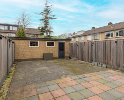 De onderhoudsvriendelijke tuin is voorzien van een nieuwe hardhouten schutting (geplaatst in 2023) en biedt voldoende privacy. Achterin de tuin bevindt zich een praktische berging voor fietsen en tuingereedschap.