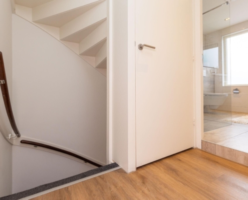 De overloop geeft toegang tot drie ruime slaapkamers, elk voorzien van vloerverwarming welke apart per ruimte regelbaar is. In de twee grote slaapkamers is al een mooie vaste kast aanwezig. De moderne badkamer, eveneens uit 2018, beschikt over een toilet, dubbele wastafel, inloopdouche en elektrische vloerverwarming.
