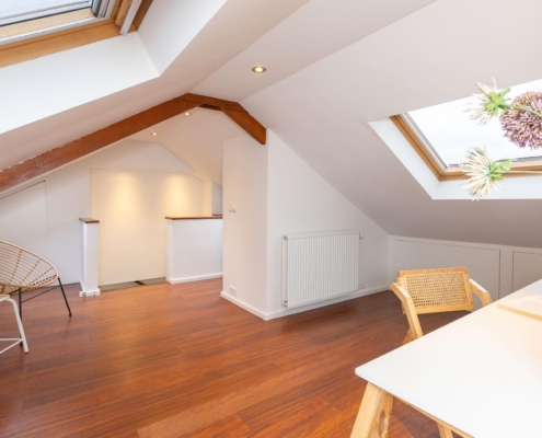 De zolderverdieping biedt extra bergruimte en de mogelijkheid voor een vierde slaapkamer of hobbyruimte, afhankelijk van uw wensen. Ook bevinden zich hier de aansluitingen voor de wasmachine, droger en CV-opstelling (2020).